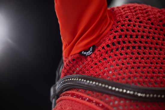 Fliegenohren aus gehäkeltem Baumwollgarn und mit Softshell Ohren. Ein tolles Highlight ist die "Kordel-Steinchen-Kordel" Kombination. Eskadron Schriftzug auf dem Ohr und Flag Label.