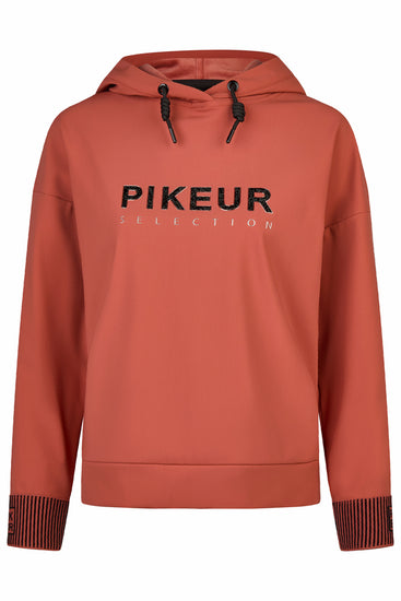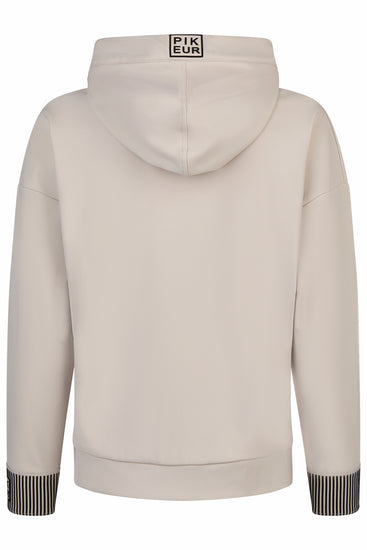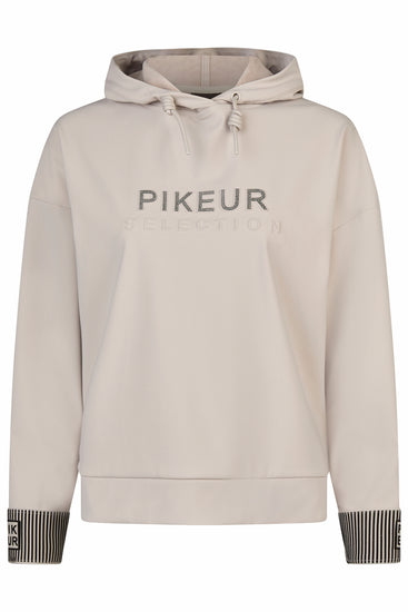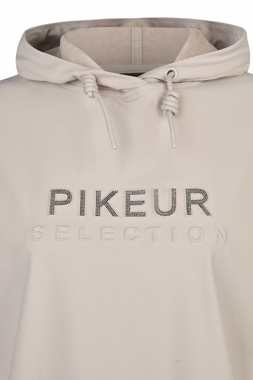 Der Pikeur Sweater Selection zeichnet sich durch seine funktionelle Verarbeitung mit weicher Innenseite aus, die höchsten Tragekomfort bietet. Der gerade, legere Schnitt mit leicht oversize Schulternaht sorgt für optimale Bewegungsfreiheit. Elastische Ärmelbündchen mit samtigem Streifenprint und dezente Flockprints auf Kapuze und Ärmeln setzen feine Akzente. Das Pikeur Selection Logo auf der Brust variiert je nach Farbwahl: In Pale Grey beeindruckt es mit erhabenen Rhinestones, während Rose Wood mit schwarzen Crystalpearls und roségoldener Umrandung glänzt. Ein hochwertiger, stilvoller Sweater.